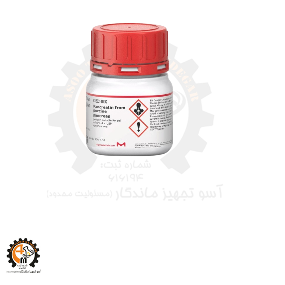 پانکراتین P3292 یک ترکیب آنزیمی استخراجشده از پانکراس حیوانی است که شامل آنزیمهای آمیلاز، لیپاز و پروتئاز میباشد. این محصول در آزمایشگاههای بیوشیمی، صنایع دارویی و تحقیقات زیستی کاربرد گسترده دارد. پانکراتین به دلیل فعالیت آنزیمی پایدار و کیفیت استاندارد، برای هضم کنترلشده پروتئینها، چربیها و کربوهیدراتها مورد استفاده قرار میگیرد. این ماده با درجه خلوص آزمایشگاهی عرضه شده و مناسب استفاده در پروژههای تحقیقاتی و تولیدی است.